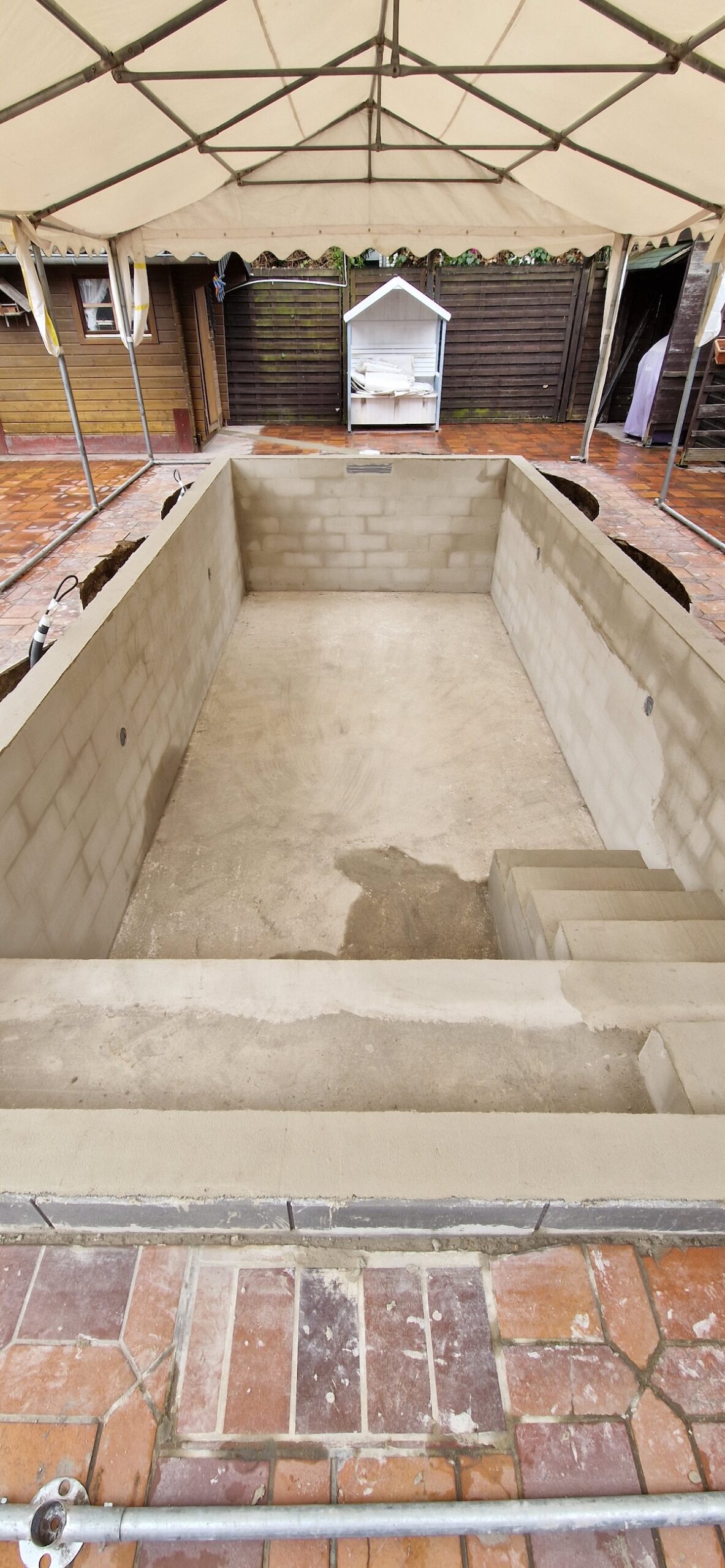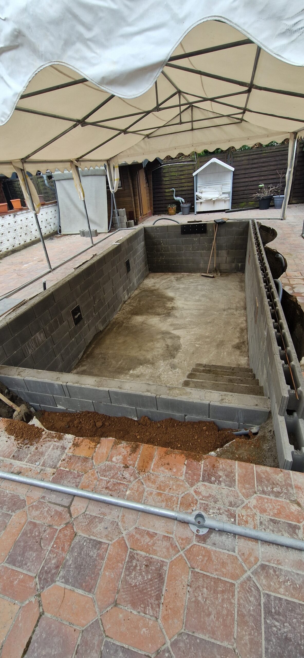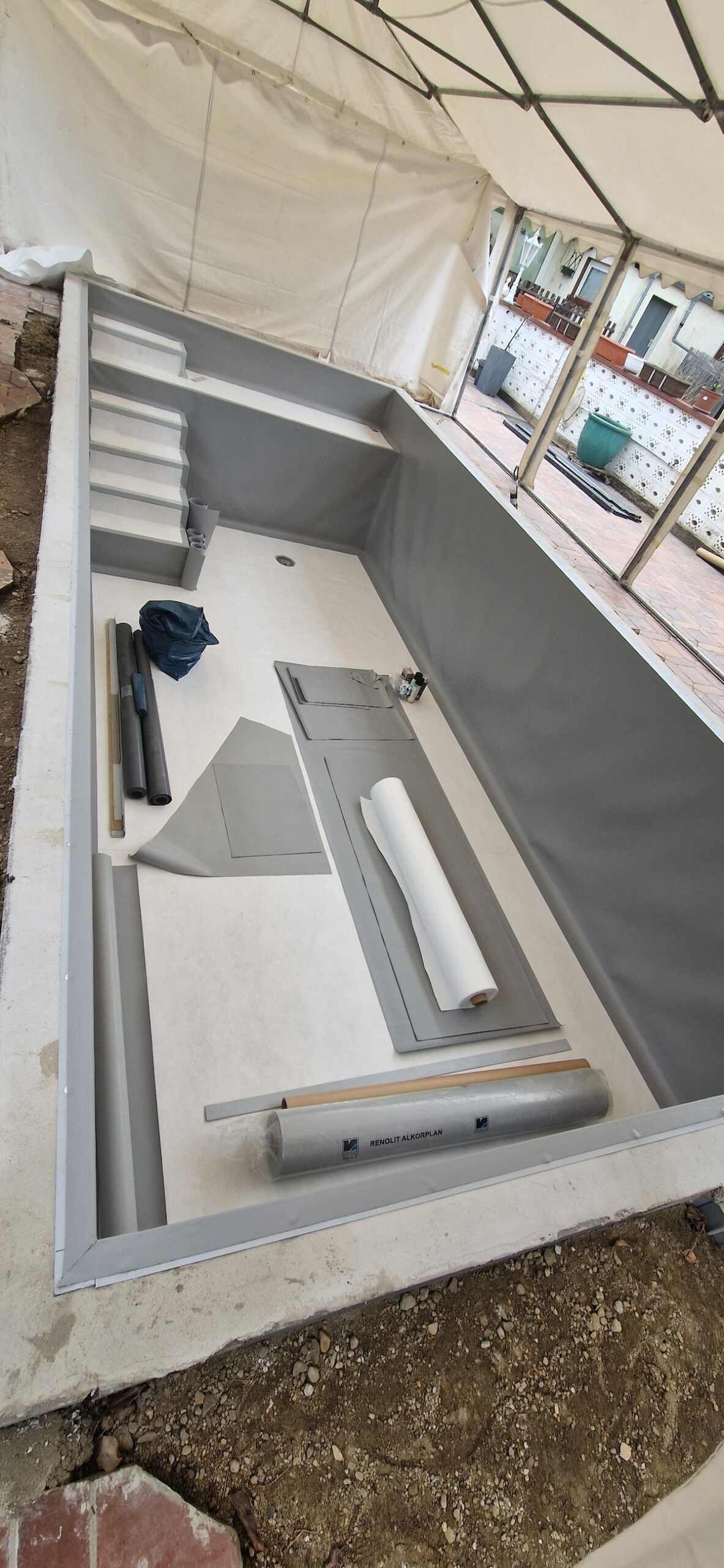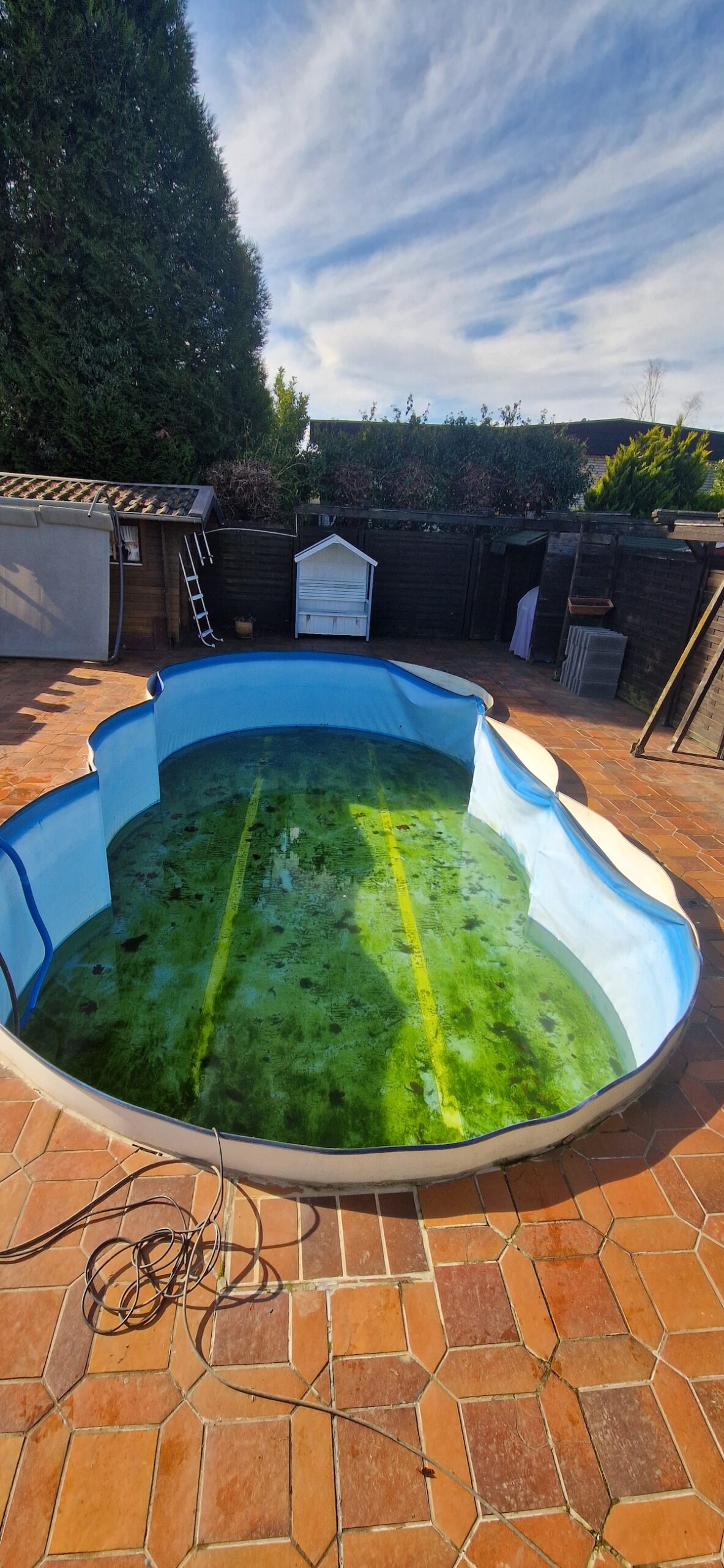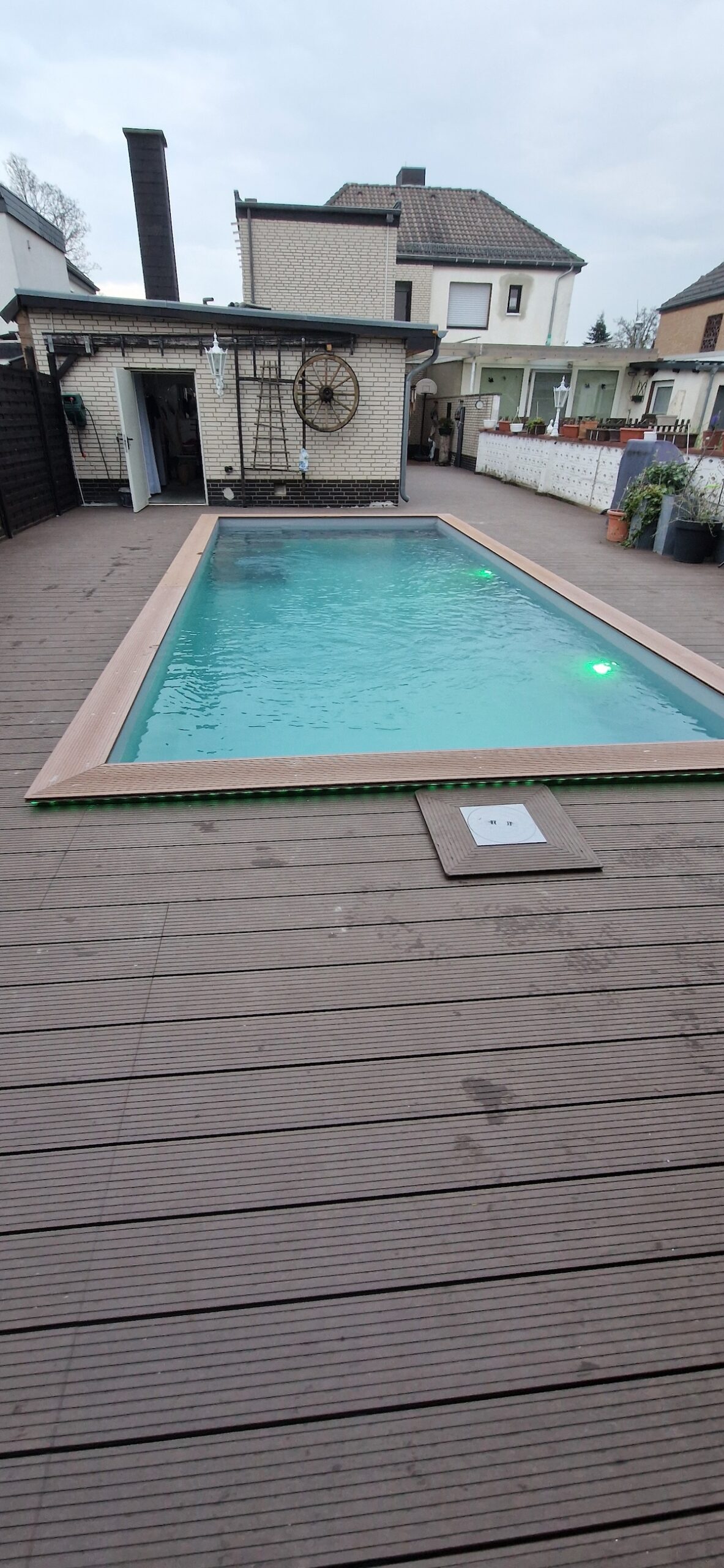 Aus einem alten, stark verschmutzten und jahrelang ungenutzten Pool wurde ein komplett neuer Gartenpool gemacht. Dafür wurde die alte Anlage inklusive Einbauteile, Leitungen und Technik vollständig zurückgebaut und fachgerecht entsorgt. Anschließend wurde der Untergrund neu vorbereitet, eine stabile Bodenplatte erstellt und der neue Pool wieder sauber eingesetzt bzw. aufgebaut und neu einbetoniert.